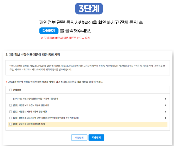 교육급여바우처를 신청하거나 사용할 때 몇 가지 주의할 점이 있습니다.